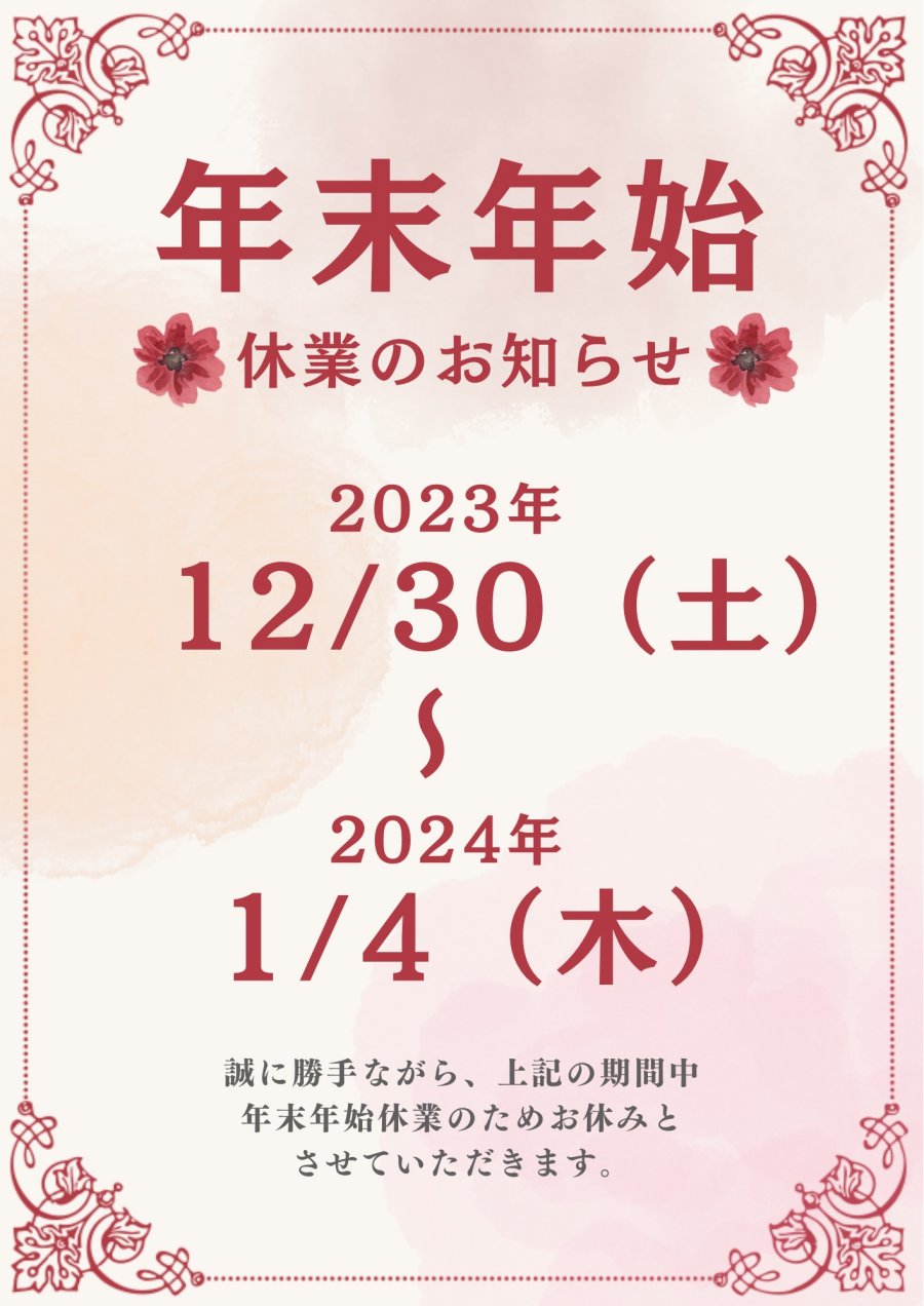【年末年始休業のお知らせ】